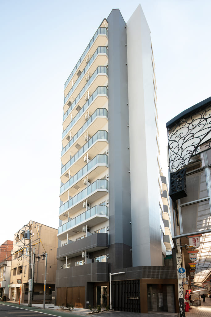 1階は商店街に面して店舗を設け、低層階にはワンルーム、上層階にはファミリータイプを設けた。