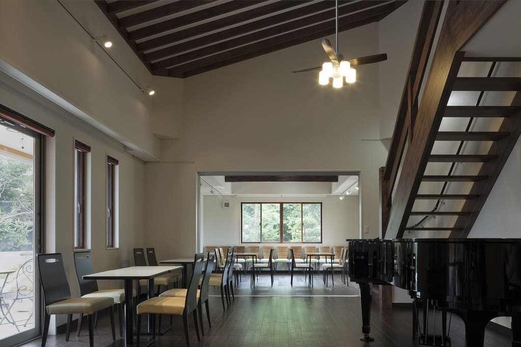 貸しホールは、コンサートや地域の人たちの交流の場、様々な用途での利用を考慮して、天井高さに変化を持たせたり、自然光の入り方や換気に工夫をもたらした。