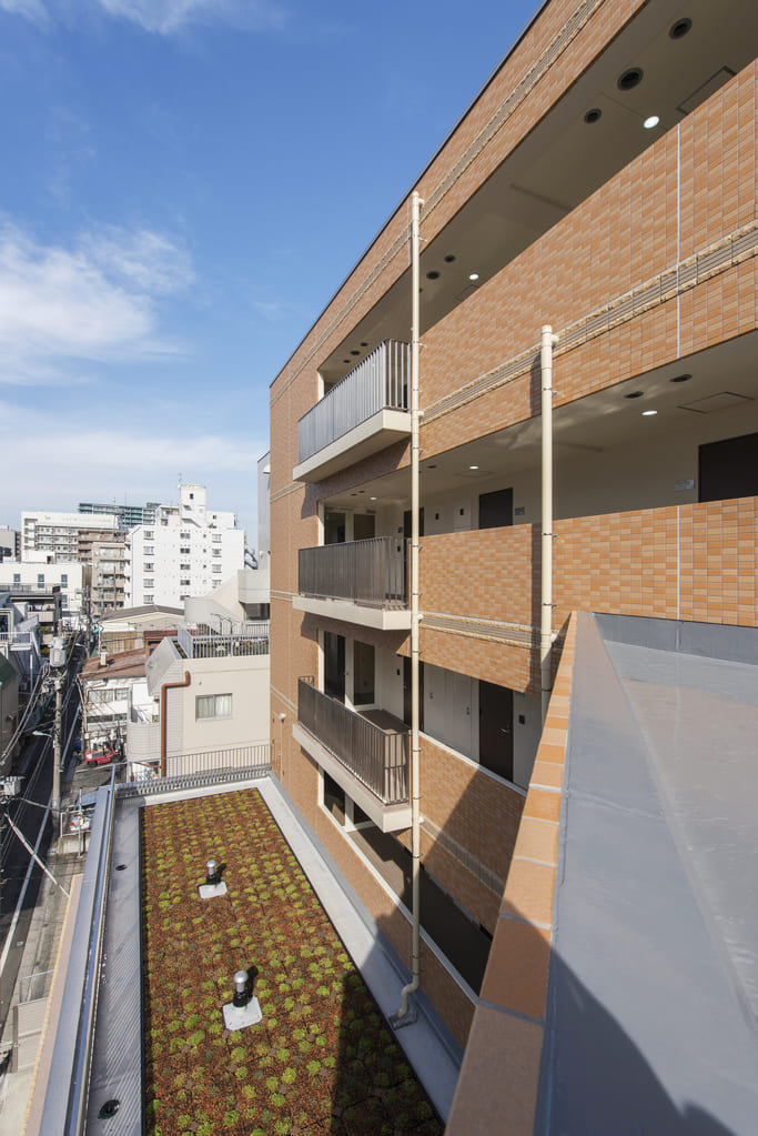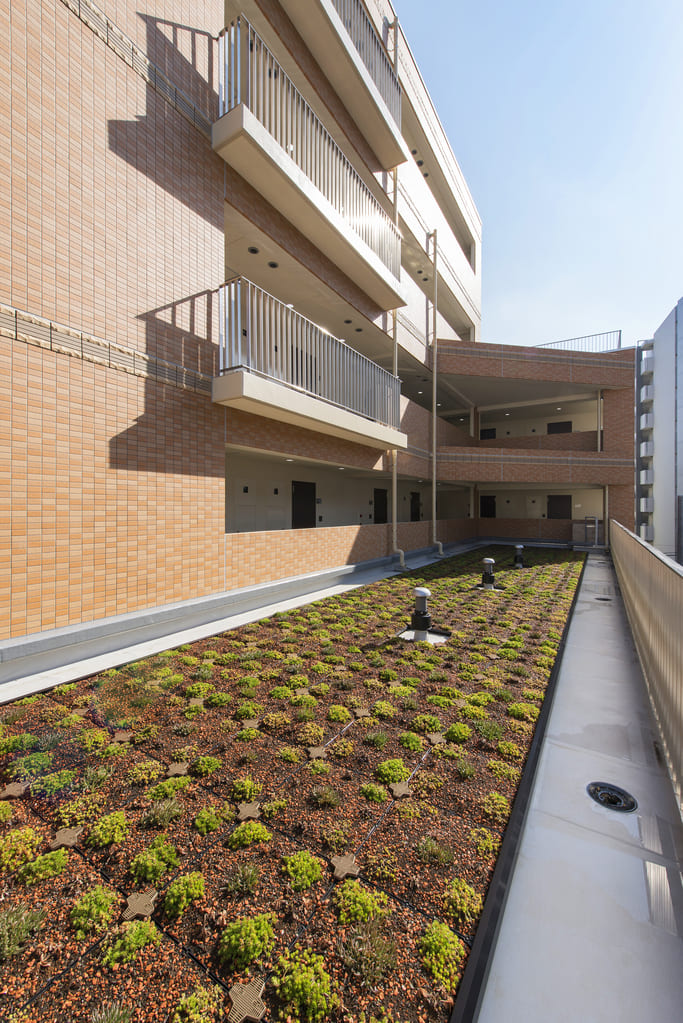病院に勤める看護師の寮を設計。敷地に接する道路の幅員が狭いことと、隣地の建物との距離が近いことを考慮し、窓の配置やバルコニーの向き、廊下の位置を熟考した。