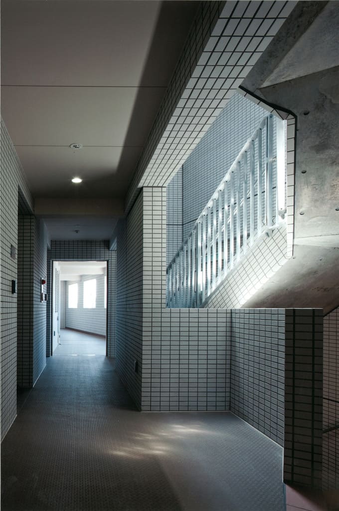 土地柄、単身者とファミリーの入居の想定を行い、ワンルームタイプ・2LDKタイプ・メゾネットタイプの部屋を計画。住戸前の共用部を大きくとることで、自転車や小さいお子さんがいる家庭の遊び道具などを置けるスペースを設けた。